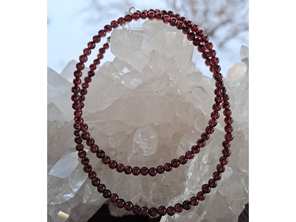 Granát náhrdelník délka 41 cm + 2,2cm prodlužovací řetízek veškeré komponenty ve stříbře Ag velikost kuličky 3 mm